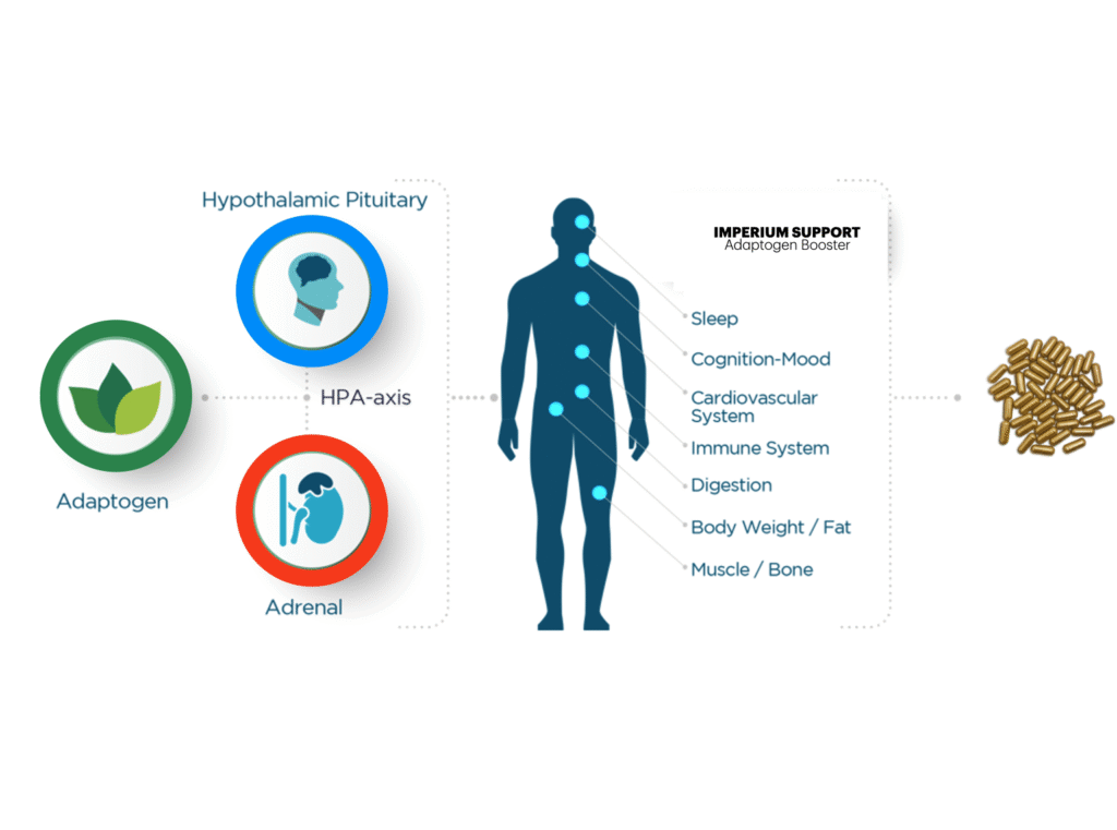 IMPERIUM features a blend of six powerful adaptogens-including Tongkat Ali, Ginkgo Biloba, Epimedium Leaf, Korean Ginseng, Pine Bark Extract, and Piper Nigrum-carefully selected to help support energy, mental focus, stress resilience, and overall vitality for men.